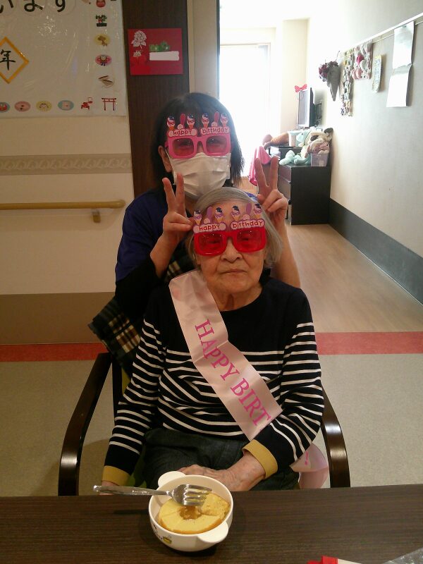 1月10日がお誕生日の方をお祝いしました。 おめかしをして記念写真を撮影しました。 最初は「これを着けるのは恥ずかしい」と照れたご様子でしたが、カメラの前ではとても素敵な笑顔を見せてくださいました。 温かいひとときとなりました。